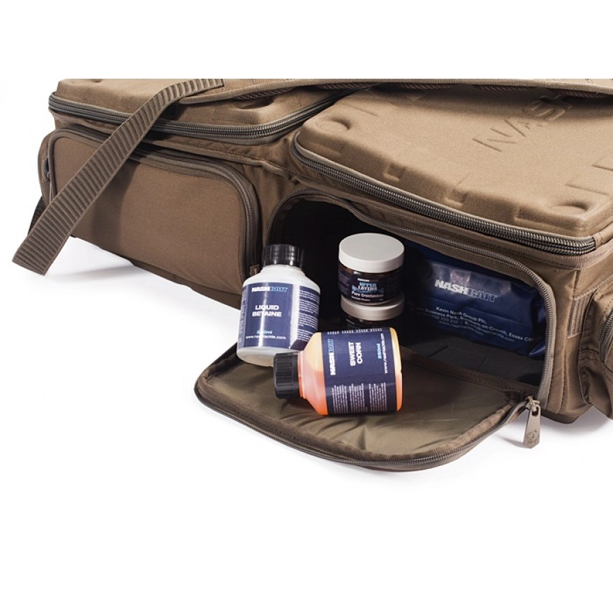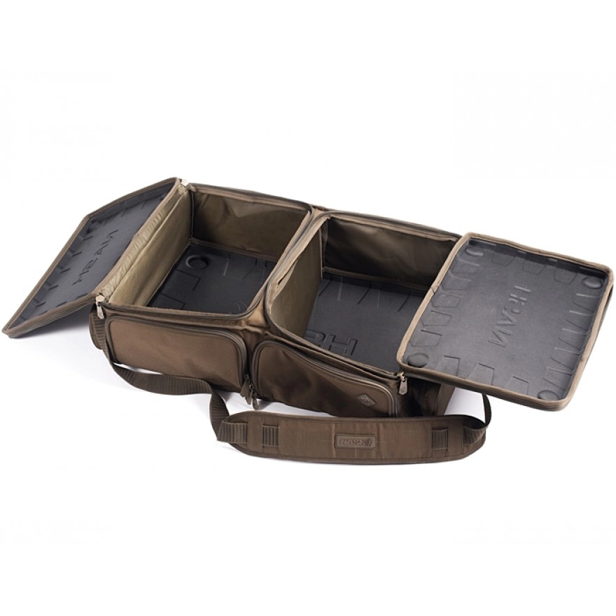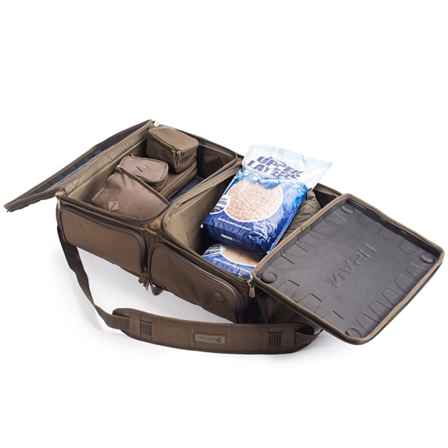 Angepasstes, flaches Design passend für den Einsatz eines Trollys, schafft es der Logix Barrow Low Loader selbst die schwerste Last perfekt auf den Trolly zu verteilen. Zwei Hauptfächer und die aus EVA Material gefertigte Unter- und Oberseite schützen Ihre Ausrüstung selbst dann, wenn noch zusätzliche schwere Lasten, wie Rutenfutterale, auf den Logix Barrow Low Loader geladen werden. Durch die verstärkten Seiten und Frontteile behält der Carryall seine Form auch dann, wenn er nur spärlich beladen ist. Reißverschlüsse auf drei Seiten sorgen dafür, dass das Hauptfach komplett geöffnet werden kann. Mittels der kleinen Fronttaschen können Ausrüstungsgegenstände selbst dann bequem entnommen werden, wenn der Logix Barrow Low Loader auf dem Trolly oder unter der Liege verstaut ist. Somit gehört das lästige Entladen, um an die Ausrüstung darunter zu kommen, der Vergangenheit an. Zwei lange Außentaschen können zudem Banksticks, Rig-Boxes oder Buzzers Bars aufnehmen. Ultra starke Tragegriffe mit verstärkten Nähten machen das Hantieren um vieles einfacher und der verstellbare, gepolsterte Tragegurt sorgt für einen angenehmen Tragekomfort und das selbst bei schwersten Lasten.