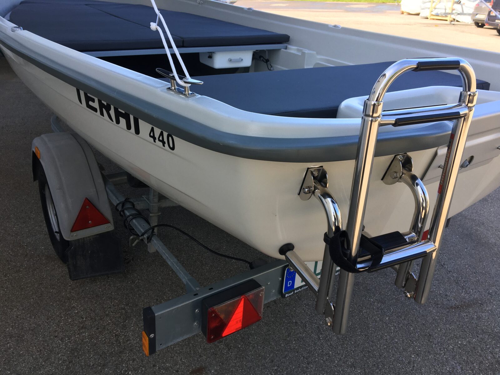 Das Terhi 440 ist ein robustes Angel- und Ruderboot und ein Raumwunder. Dank seiner Rumpfbreite ist das Terhi 440 sehr stabil und tragkräftig. Als Transportboot bringt es auch größere Traglasten sicher ans Ziel. Beim Auslegen und Einholen von Fischnetzen bleibt das Boot kippsicher. Es hat abschließbare Staufächer im Bug und Heck sowie eine in der Längsrichtung verstellbare und abnehmbare Mittelducht. Der Staukasten am Heck ist abschließbar. Bei Bedarf kann das Boot mit einem Außenborder oder einem Elektromotor ausgestattet werden.