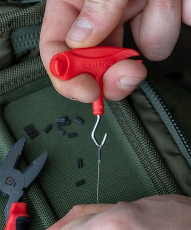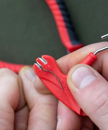 Das 3-in-1 Puller Tool wurde von Grund auf mit dem Angler im Hinterkopf entwickelt. Mit einem extra starken, überzogenem Voll-Draht Knot-Puller können Sie Knoten mit Leichtigkeit sicher und fest zuziehen. Die doppelten Abisolierklingen sind für eine bequeme und beschädigungsfreie Entfernung der Vorfachbeschichtung konzipiert. Die beiden Größen sind für Material mit einem Durchmesser von 0,3 mm bzw. 0,4 mm ausgelegt. Das Schrumpfschlauch-Formteil wurde speziell entwickelt, um Ihren Haken in Position zu halten und Ihre Finger vor heißem Dampf zu schützen. So können Sie ganz einfach den perfekten Winkel für Ihr Rig erzeugen. Unser Tool verfügt außerdem über Haarlängenmarkierungen auf der Rückseite, die im Abstand von 5 mm angebracht sind und ein präzises und genaues Anfertigen der Rigs ermöglichen.