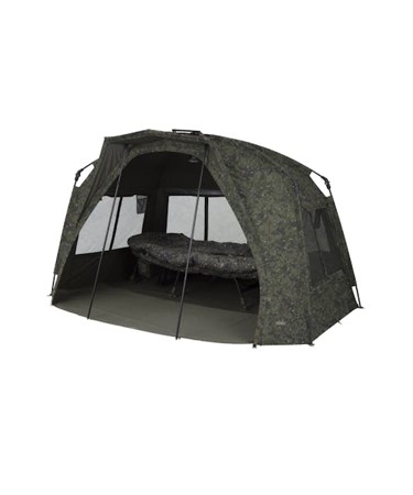 Zu den weiteren Verbesserungen des Rapid Shelter gehört ein eingebauter Vorbau, der das Eindringen von Wasser in und um die Tür herum minimiert. Dieser kann mit einem zusätzlichen Skull Cap erweitert werden, um noch mehr Schutz zu bieten. Die Rückseite des Shelters ist flacher als beim Vorgängermodell, wodurch ein optimales Gleichgewicht zwischen dem Stauraum im Innern, der Möglichkeit es auch auf engen Angelplätzen aufzubauen und der Aerodynamik geschaffen wurde. Die Luftzirkulation wurde durch die Adaptive Ventilation® von Trakker mit sechs Belüftungsöffnungen (vier auf der Rückseite und zwei auf der Vorderseite) verbessert, wodurch die Ventilation auch bei Regen erleichtert wird.
