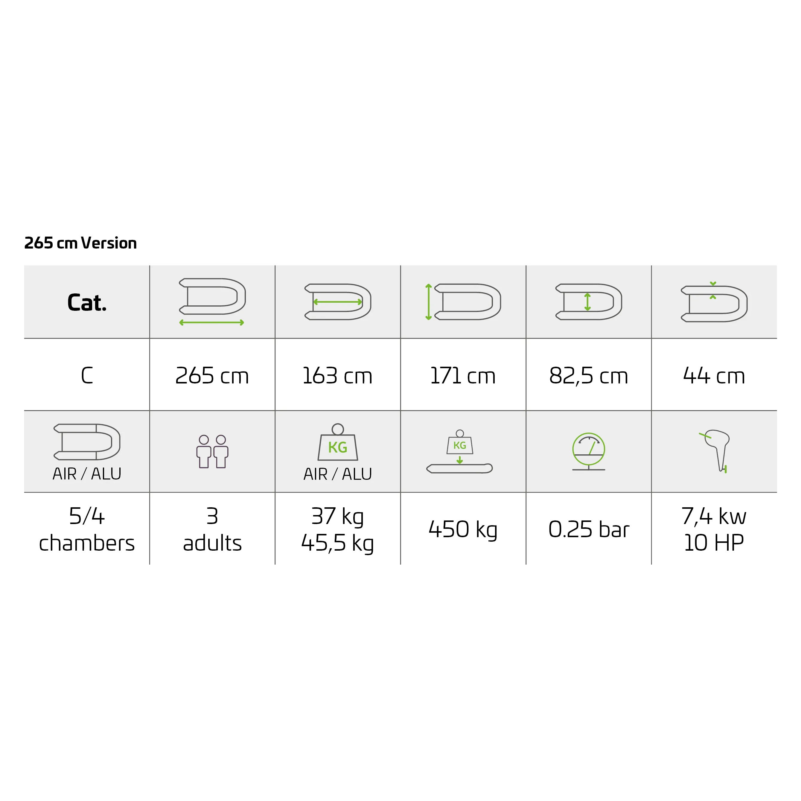 Das Tusker 2.0 gibt es in allen Längen entweder mit einer Anti-Rutsch-Airmat oder mit einem schwarzen Aluminium-Boden. Beide Bodenvarianten passen übrigens in dasselbe Boot. Bei Bedarf kannst Du Dir beide Böden zulegen und je nach Art der Session entscheiden, was Dir wichtiger ist: Entweder die Aufbaugeschwindigkeit und ein niedrigeres Gewicht (Vorteil Airmat) oder aber die Fahrstabilität in Gleitfahrt (Vorteil Aluminium-Boden).